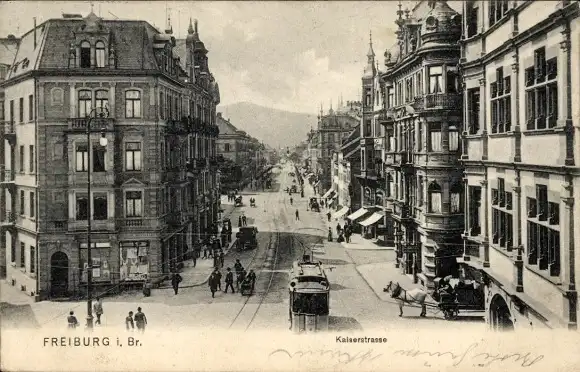 Ak Freiburg im Breisgau, Kaiserstraße, Straßenbahn