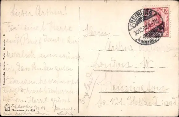 Zustand, siehe Scan, gelaufen, 1908 - ca 14 cm X 9 cm
