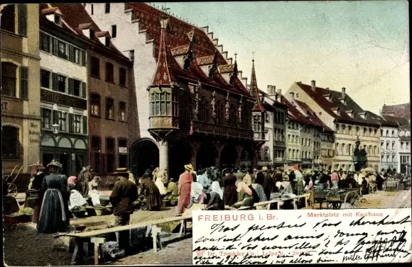 Ak Freiburg im Breisgau, Marktplatz mit Kaufhaus