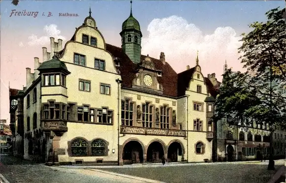 Ak Freiburg im Breisgau, Rathaus, Uhr