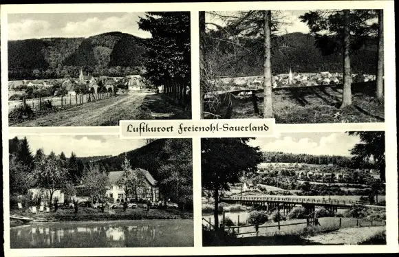 Ak Freienohl Meschede im Sauerland, Ort, Brücke, See