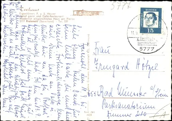 Zustand, siehe Scan, gelaufen, 1965- Inh. Heuser - ca 15 cm X 11 cm
