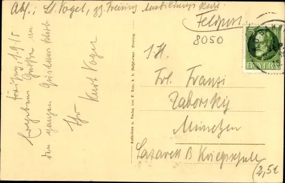 Zustand, siehe Scan, gelaufen, 1915 - ca 14 cm X 9 cm