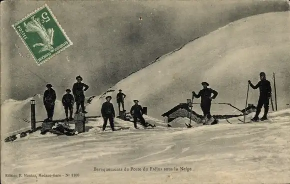 Ak Fréjus Var, Baraquements du Poste du Frejus sous la Neige