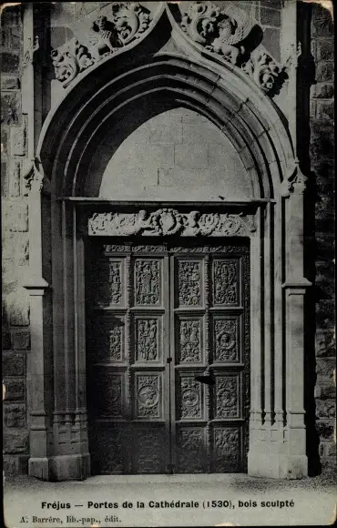 Ak Fréjus Var, Portes de la Cathedrale, bois sculpte