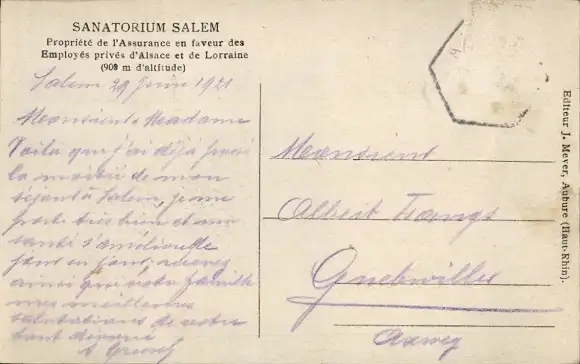 Ak Fréland Elsass Haut Rhin, Sanatorium Salem