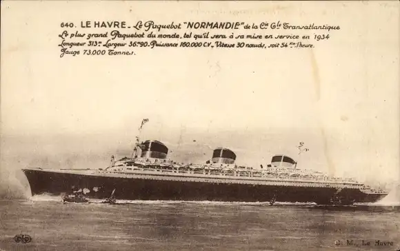 Ak French Line, CGT, Paquebot Normandie, Dampfer