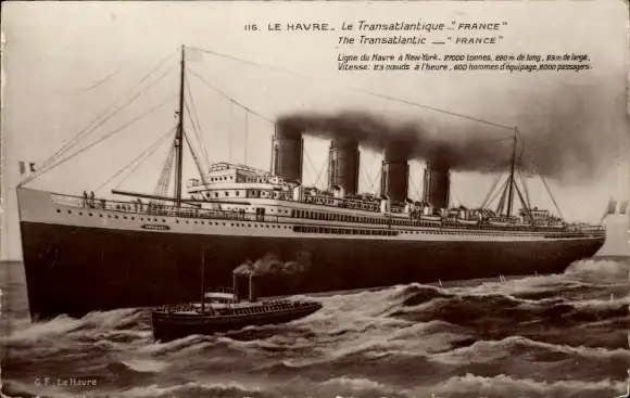 Ak French Line, CGT, Transatlantique France, Dampfschiff
