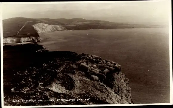 Ak Freshwater Bay Isle of Wight England, Sheep on the cliffs