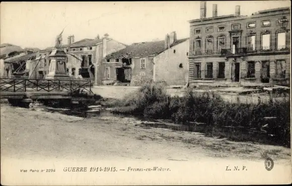 Ak Fresnes en Woëvre Meuse, Straßenpartie, Kriegszerstörung