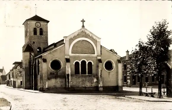 Ak Fresnes sur Marne, Kirche mit Uhrturm, Straßenansicht, ältere Architektur