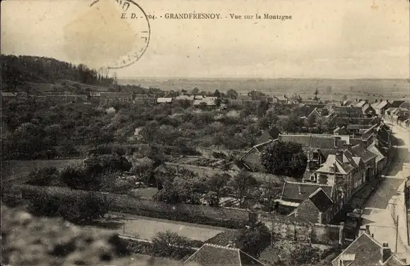 Ak Fresnoy Le Grand Aisne, Vue sur la Montagne