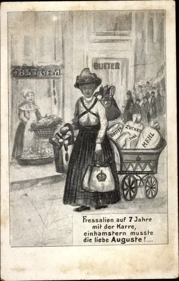 Ak Fressalien auf 7 Jahre mit der Karre, Kaiserin Auguste Viktoria