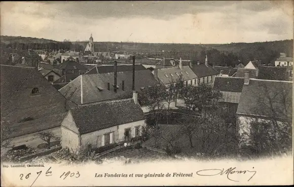 Ak Fréteval Loir et Cher, Les Fonderies et vue générale
