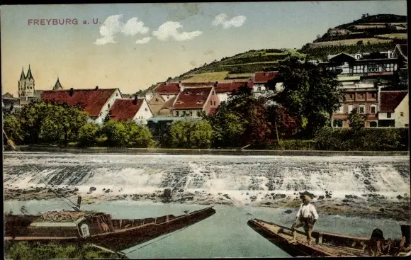 Ak Freyburg an der Unstrut, Boote, Wehr, Blick zur Stadt