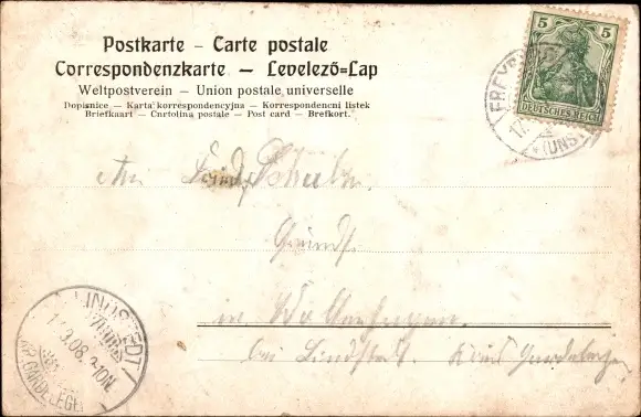 Zustand, siehe Scan, gelaufen, 1908 - ca 14 cm X 9 cm
