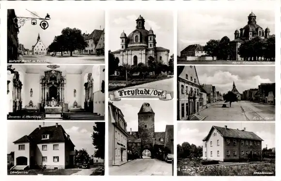 Ak Freystadt in der Oberpfalz Bayern, Landpolizei, unterer Markt, Rathaus, Marktkirche, Krankenhaus