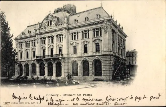 Ak Fribourg Freiburg Stadt Schweiz, Batiment des Postes