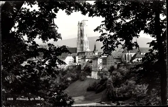 Ak Fribourg Freiburg Stadt Schweiz, Durchblick zur Stadt