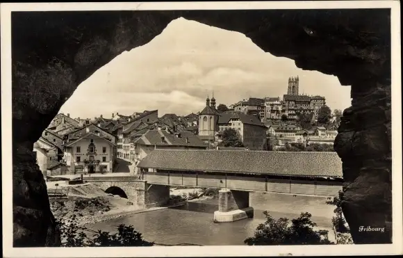 Ak Fribourg Freiburg Stadt Schweiz, Durchblick zur Stadt