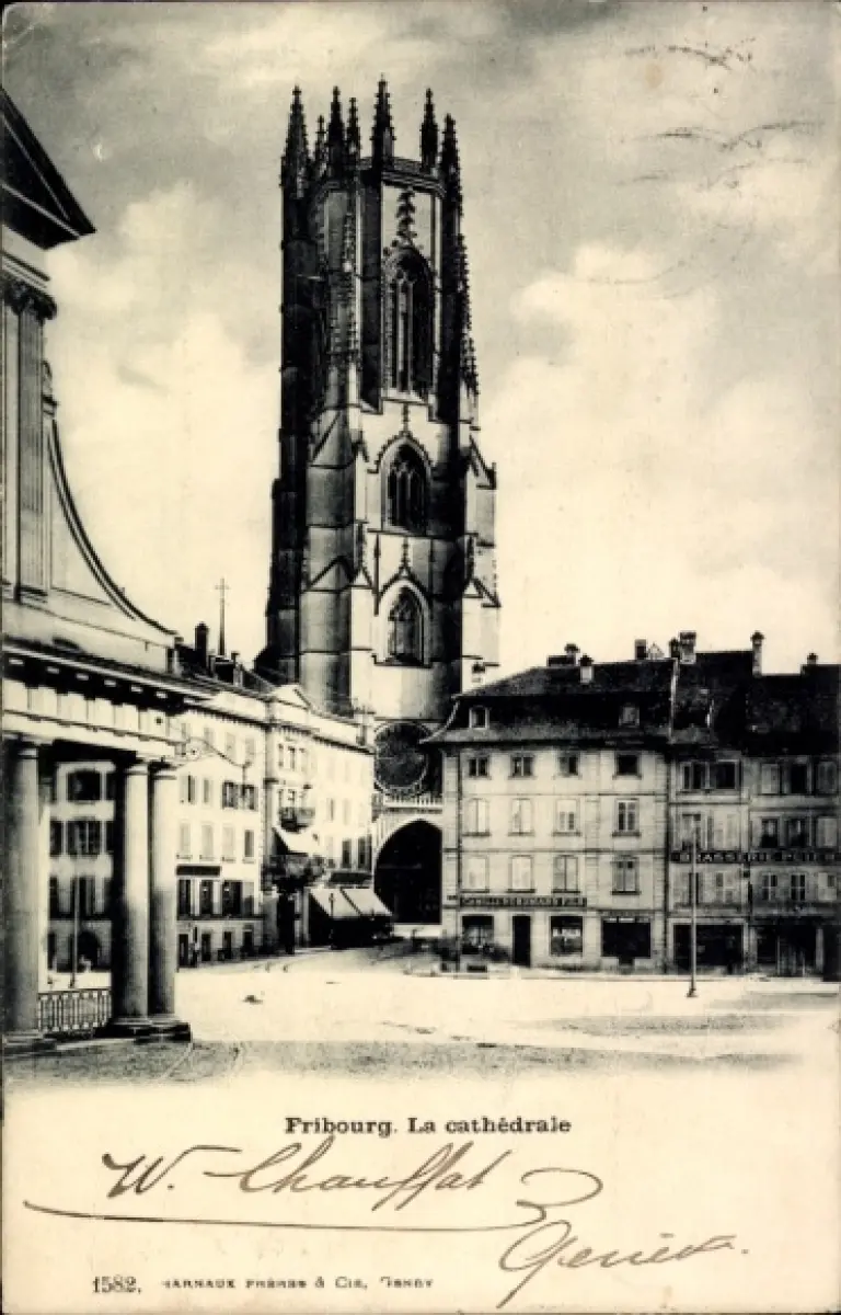 Ak Fribourg Freiburg Stadt Schweiz, Kathedrale von Turm, Stadtansicht, Schwarz-Weiß-Foto