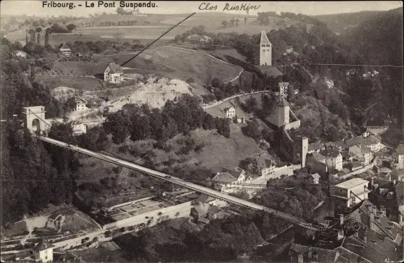 Ak Fribourg Freiburg Stadt Schweiz, Le Pont Suspendu