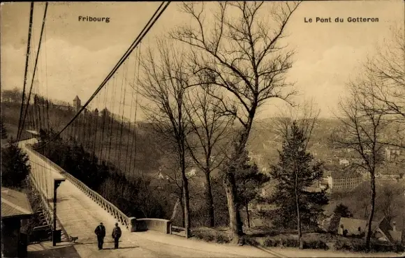Ak Fribourg Freiburg Stadt Schweiz, Le Pont du Gotteron, Hängebrücke