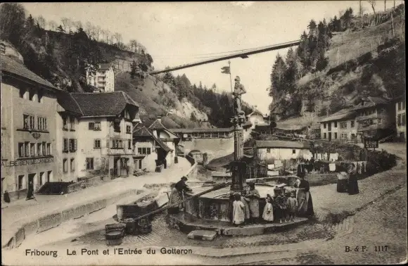 Ak Fribourg Freiburg Stadt Schweiz, Le Pont et l'Entrée du Gotteron