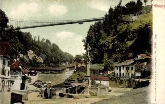 Ak Fribourg Freiburg Stadt Schweiz, Teilansicht, Brücke