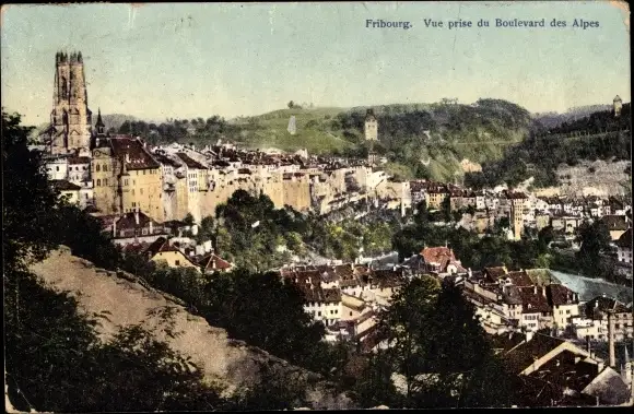 Ak Fribourg Freiburg Stadt Schweiz, Vue prise du Boulevard des Alpes