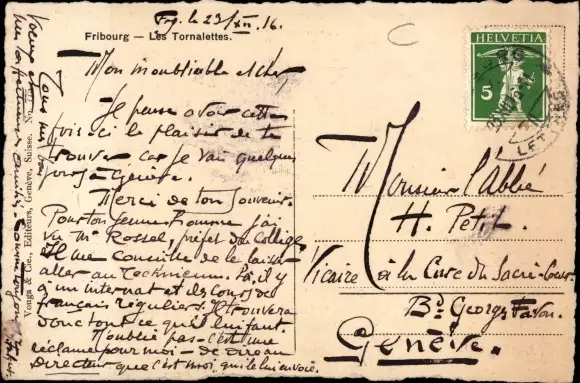 Ak Fribourg Freiburg Stadt Schweiz, les Tornalettes, Kirchturm, Eckhaus