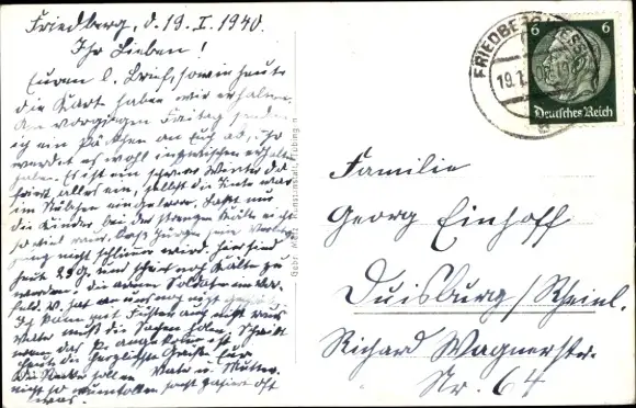 Zustand, siehe Scan, gelaufen, 1940 - ca 14 cm X 9 cm