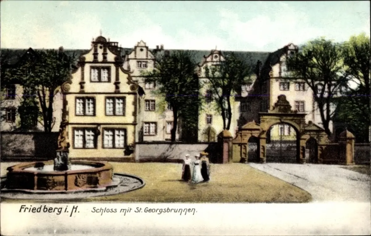 Ak Friedberg in Hessen, Schloss mit St. Georgsbrunnen