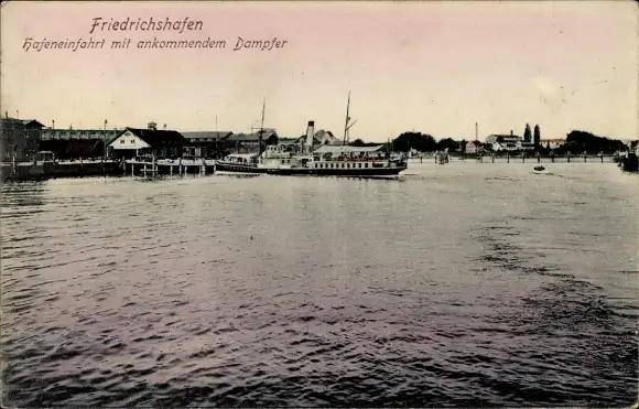 Ak Friedrichshafen am Bodensee, Hafeneinfahrt, ankommender Dampfer
