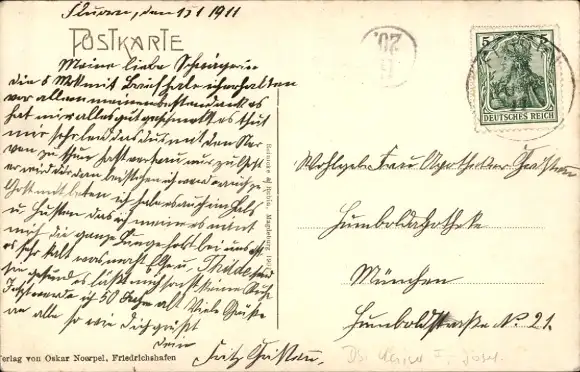 Zustand, siehe Scan, gelaufen, 1911 - ca 14 cm X 9 cm