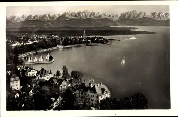 Ak Friedrichshafen am Bodensee, Luftbild, Segelboote