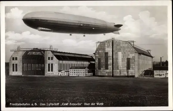 Ak Friedrichshafen am Bodensee, Luftschiff Graf Zeppelin über der Werft, LZ 127