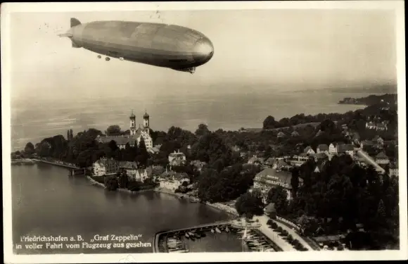 Ak Friedrichshafen am Bodensee, Luftschiff LZ 127 Graf Zeppelin, Fliegeraufnahme