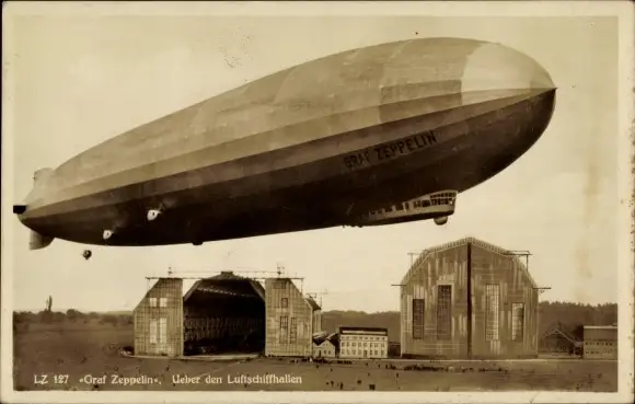 Ak Friedrichshafen am Bodensee, Luftschiff LZ 127 Graf Zeppelin über der Luftschiffhalle