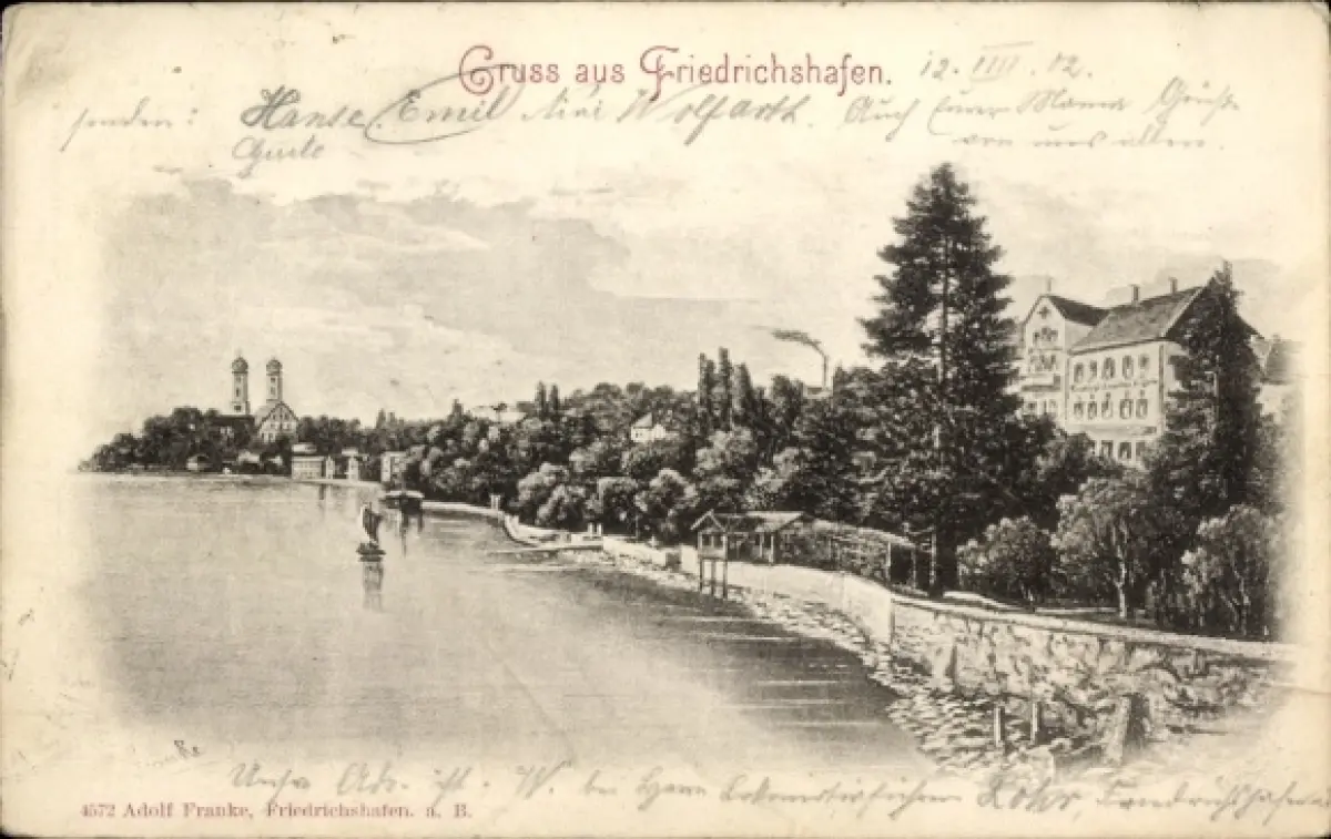 Ak Friedrichshafen am Bodensee, Teilansicht mit Schloss im Hintergrund