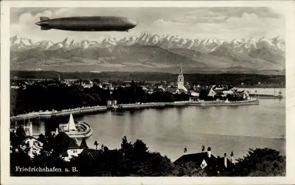 Ak Friedrichshafen am Bodensee, Totalansicht, Zeppelin