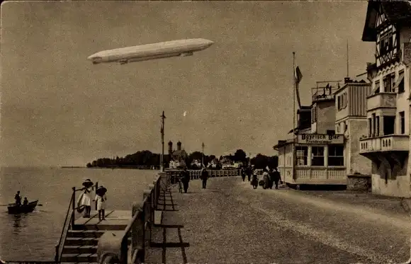 Ak Friedrichshafen am Bodensee, Uferstraße, Zeppelin in der Luft, Gasthaus Bayrisch Bier