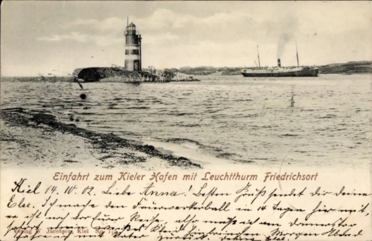 Ak Friedrichsort Kiel, Kieler Hafen, Leuchtturm Friedrichsort, Schiffe, Wasser