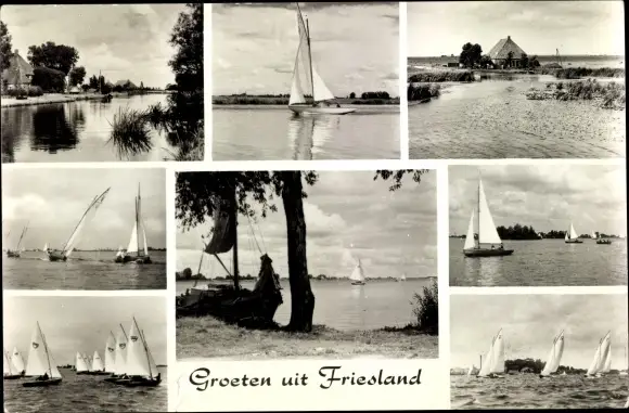 Ak Friesland Niederlande, Segelpartie, Segelboote
