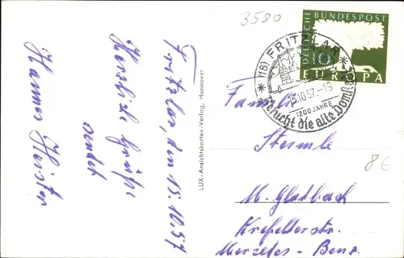 Zustand, siehe Scan, gelaufen, 1957 - ca 14 cm X 9 cm