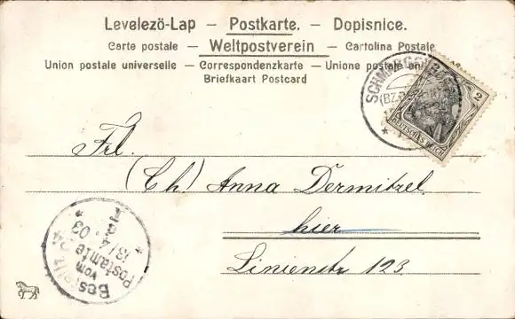 Zustand, siehe Scan, gelaufen, 1903 - ca 5 cm X 3 cm