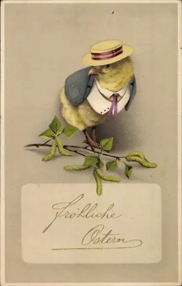 Ak Fröhliche Ostern, vermenschlichtes Küken