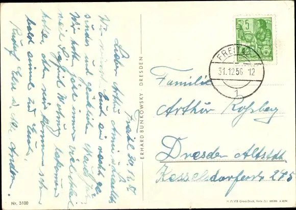 Zustand, siehe Scan, gelaufen, 1956 - ca 11 cm X 15 cm