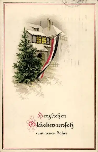 Ak Fröhliches Neujahr, Tannenbaum, Flagge, 1. WK