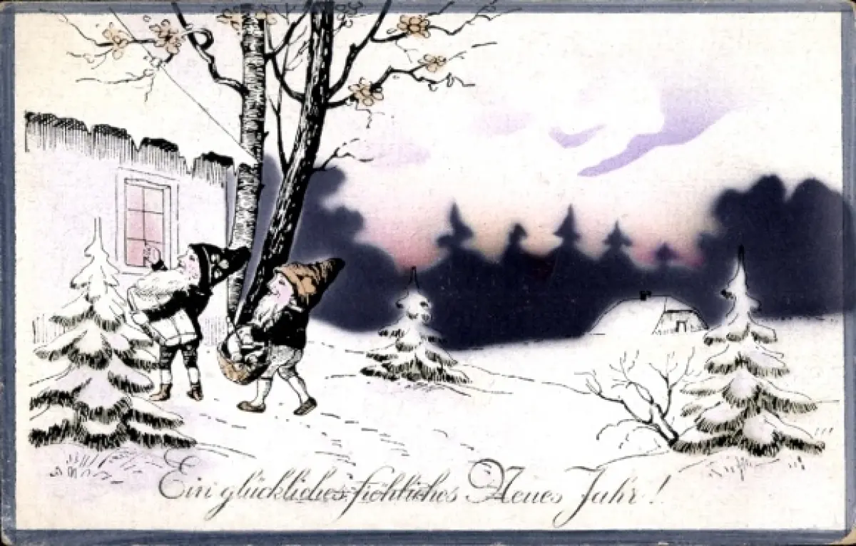 Ak Fröhliches Neujahr, Zwerge am Fenster
